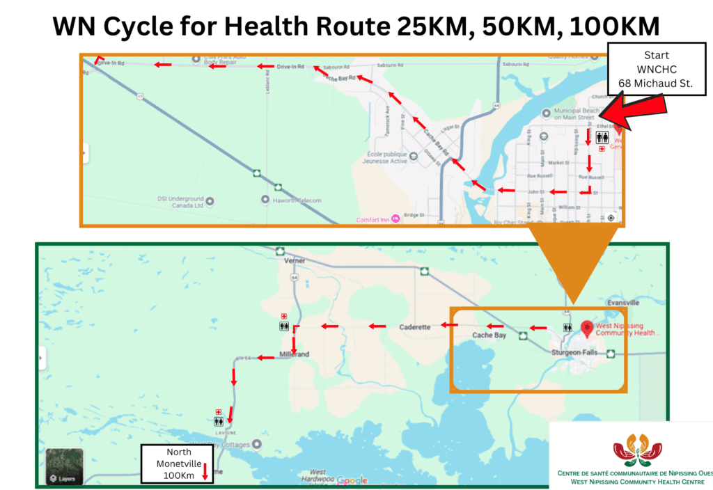 The West Nipissing Cycle for Health is all about encouraging our community to make healthy lifestyle choices while building connections. All proceeds will be directly reinvested into our community by helping us expand our services and programs to better support the health and well-being of our residents.